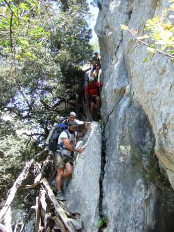 I passaggi più impegnativi sono attrezzati con tronchi di ginepro...