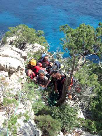 Gli ultimi tratti di arrampicata nella tappa che conduce a Cala Sisine